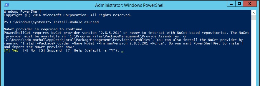 Type the following command in the PowerShell console and press Enter: Install-Module -Name PowerShellGet -Force